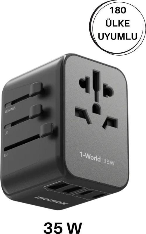 Momax 35W 1-World 5-Port Ac Seyahat Piriz Dönüştürücü Charger (Black)