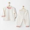 3-6 aylık bebekler için uygun olan bu takım, ekru rengiyle dikkat çeker.