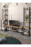 Moniev Bade Tv Ünitesi Yaşam Ünitesi Seti Metal Kitaplıklı Dekoratif Tv Ünitesi Çok Amaçlı 3'Lü Set Safir