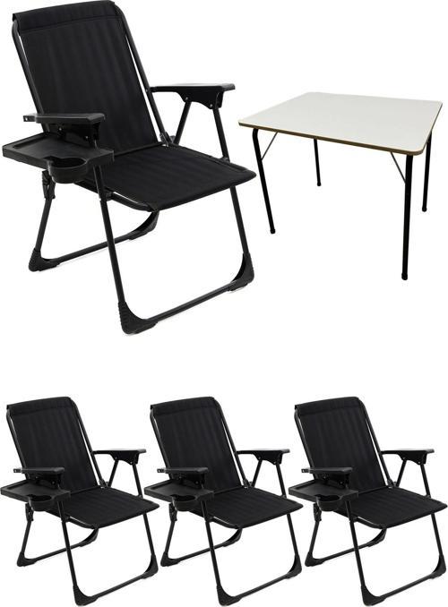 Moniev Natura 4 Adet Kamp Sandalyesi Katlanır Sandalye Dikdörtgen Bardaklıklı Siyah + Katlanır MDF Masa
