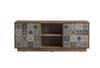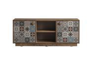 Doğal ahşap tonlarıyla uyumlu kapak detayları, ortama canlılık katarken, geniş depolama alanları sayesinde düzenli bir kullanım imkânı sağlar. Orta bölümdeki raf yapısı, uydu alıcısı, medya oynatıcı ya da dekoratif objeler için idealdir.