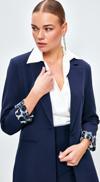 Mono yaka, fleto cep, leopar astarlı, kalça altı boy, tek düğme iliklemeli, vatkalı ceket.