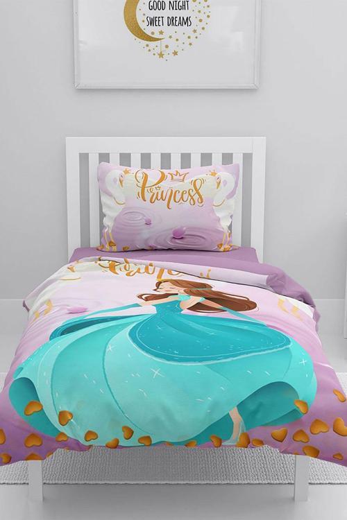 MonoHome Mavi Prenses 3D Pamuk Saten Çocuk Nevresim Takımı 160 cm x 220 cm - Özel Dokuma Pamuk Saten - Oxford Yastık - Dijital Baskı Canlı Renkler