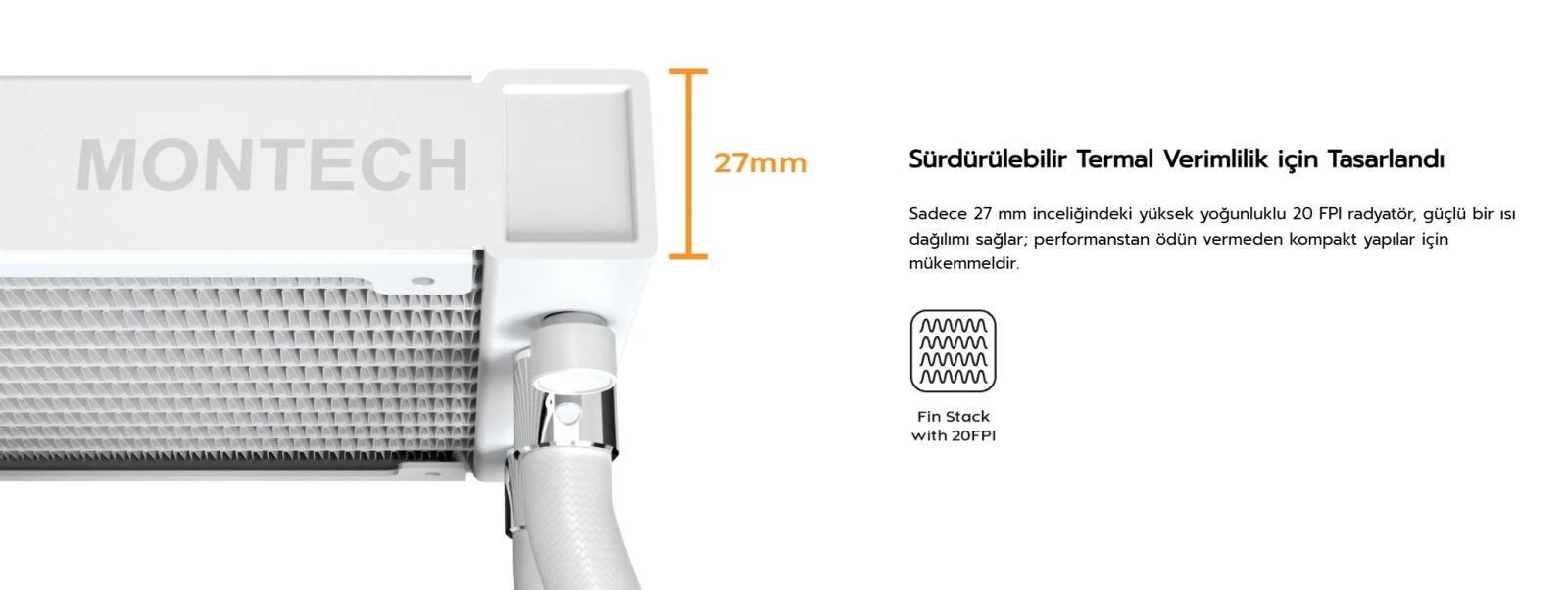 MONTECH HyperFlow Dijital 360 CPU Sıvı Soğutucu, 3100 RPM Pompalı 360 mm AIO, 3×120 mm E28 ARGB Fanlar, Gerçek Zamanlı Dijital Ekran, Intel ve AMD Desteği (Beyaz)