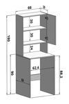 Ölçüler: Derinlik: 60 cm, Yükseklik: 180 cm, Genişlik: 62 cm, Üst Dolap Derinliği: 29 cm.