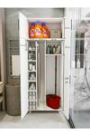 Montenero Çok Amaçlı Dolap Beyaz Banyo Düzenleyici Kiler Dolabı Kova Süpürge Paspas Deterjan Dolabı Büyük Boy
