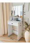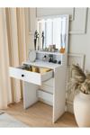 Ürün Açıklaması: Şıklığı ve sadeliği bir arada sunan çekmeceli, raflı led aynalı makyaj masası, zarif tasarımı ile makyaj rutininizi kolaylaştırır.