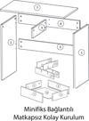 Kolay kurulum: Matkap kullanımı gerektirmez, ürünü yalnızca tornavida ve çekiç ile montajlayabilirsiniz. Ürün üzerindeki tüm delikler açılmış olup kurulum sırasında delme işlemi gerektirmez. Kurulum için gerekli hırdavat seti (vida, minifix, çivi vb.) koli içerisinde yer almaktadır. Detaylı olarak hazırlanmış montaj kılavuzu ile kısa sürede kurulum yapabilirsiniz.