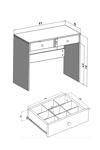 Malzeme: Ürünün gövdesi 18 mm parlak beyaz suntalamdır. Arkalık beyaz MDF'dir. Çekmecede klasik ray kullanılmaktadır.