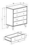 Ölçüler: Derinlik: 43 cm, Yükseklik: 91 cm (ayak dahil), Genişlik: 80 cm, Ayak yükseklik: 15 cm