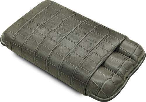 Montes Gerçek Deri El Yapımı Puro Kılıfı Üçlü (60 Ring) Croco Ceniza -