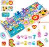 E-life shop Montessori 8 Fonksiyonlu Ahşap Eğitici Logaritmik Sayı ve Şekil Oyuncak Seti + Balık Tutma Oyunu