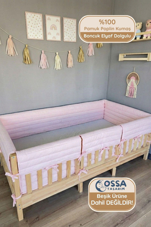 Yasetex Tasarım Montessori ve Beşik İçin Full Yan Koruma Seti - 4 Kenar Tam Koruma %100 Pamuk Antialerjik Toz Pembe