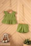 Montisu markasının %100 pamuk müslin kumaşından üretilen kız çocuk takımı, yumuşak dokusuyla çocukların rahat etmesini sağlar.