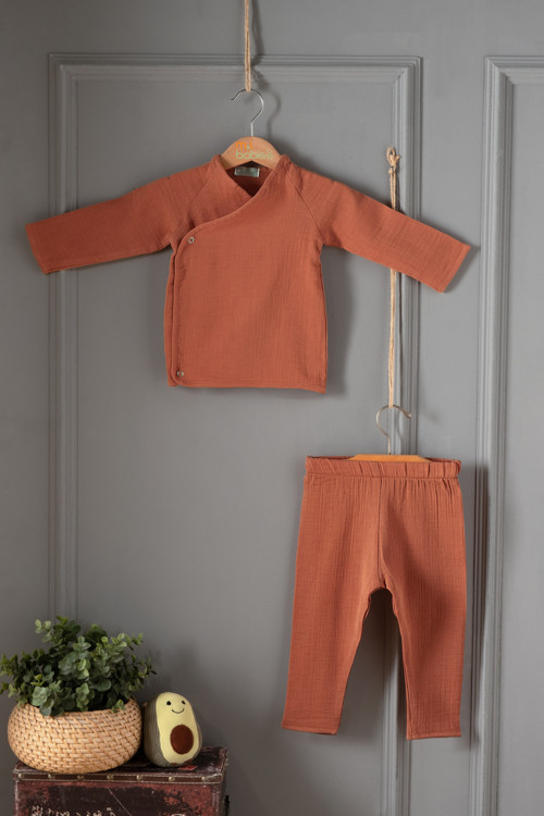 M&İ Babies in %100 pamuk, nefes alan müslin kumaşından üretilen bu 2 li takım