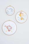 3 Adet Farklı Boyutlarda Duvar Süsü/Kasnağı:Ahşap kasnakların üzerine kaliteli, canlı pigmentli dijital baskılı %100 pamuklu kumaş kullanılmıştır