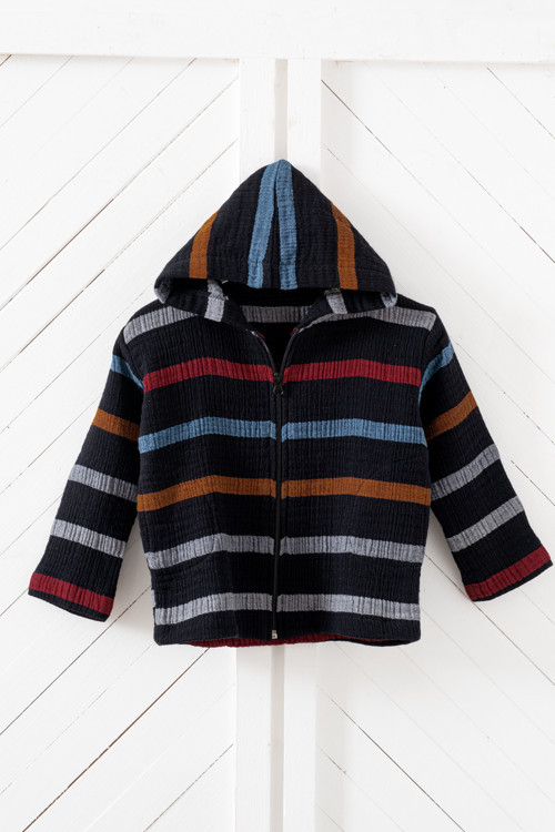 % 100 pamuk müslin kumaştan üretilmiş bu çocuk kapüşonlu ceket, yumuşak dokusu ve nefes alabilen yapısıyla miniklerin hassas cildine dosttur.