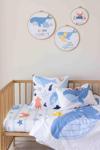 Nevresim takımı, kırlent ve 3'lü tablo ile bebeğinizin odasına şıklık katar.