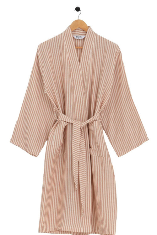 Homewear koleksiyonunun bir parçası olan bu sabahlık, evde geçirilen zamanları daha konforlu hale getirir - Bağlamalı kapama şekli sayesinde kolayca giyilip çıkarılabilir ve kişisel konforunuz için mükemmel bir uyum sağlar - Uzun kollu tasarımı ile mevsim geçişlerinde ideal sıcaklıkta tutar ve şık bir görünüm sunar - Çizgili deseniyle zamansız bir stil oluştururken, ev ortamında rahatlıkla tercih edilebilir - Relaxed kalıbı sayesinde vücudu sarmayan, özgürce hareket etme imkanı tanır - Standart boyu ile farklı vücut tiplerine uyum sağlayarak ev giyiminde pratik bir seçenek haline gelir