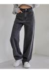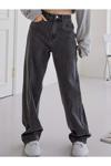 Günlük giyimde rahatlık ve şıklığı bir arada sunan füme likralı süper yüksek bel salaş jean pantolon, her tür üst giyimle kolayca kombinlenebilir.