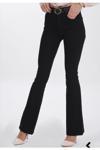 Kadın Yüksek Bel Ispanyol Paça Solmayan Siyah Kot Pantolon Jean