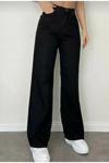 Düz modeli ve uzun boyu ile klasik jean pantolon görünümünü modern bir dokunuşla buluşturur