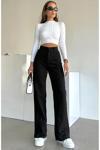 Mooishan Pamela Kadın Solmayan Siyah Süper Yüksek Bel Wide Leg Comfort Likralı Palazzo Jeans Pantolon