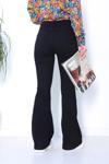 Siyah Likralı Yüksek Bel Wide Leg İspanyol Jean Pantolon