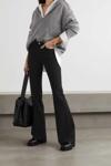 Mooishan S.o.l.m.a.z. Siyah Ispanyol Paça Jean Ekstra Likra Kadın Yüksek Bel Uzun Bacak (TOPARLAYICI)