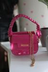 Moom Bag Kadın Fuşya Rugan Örme Sap Detaylı Zincirli Omuz Çantası