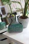 Moom Bag Kadın Silver Yeşil 2 Renkli Detaylı Deri Askılı Taşlı Abiye Omuz Çantası