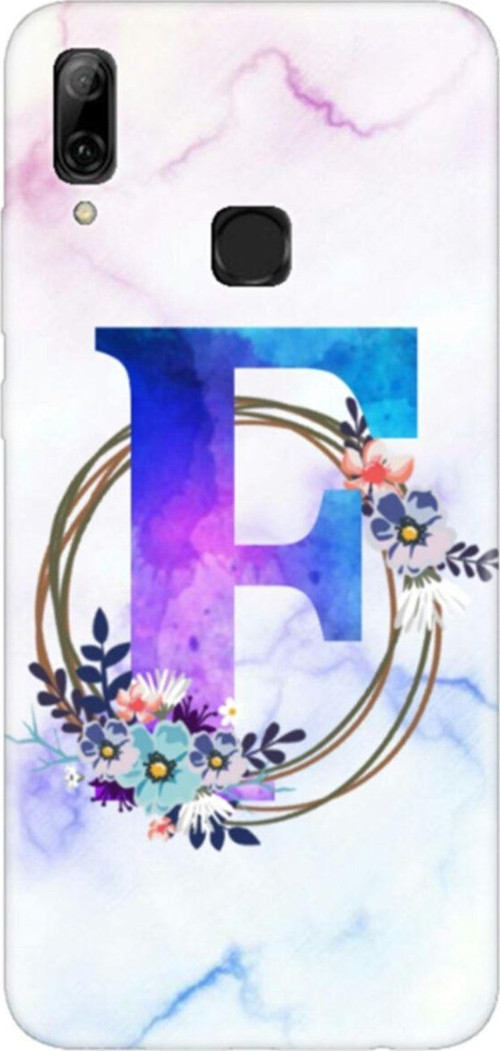 Huawei Psmart 2019 Renkli Mermer Desen F Harfli Telefon Kılıfı