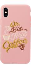 İphone X First Coffee Premium Pembe Lansman Silikonlu Kılıf