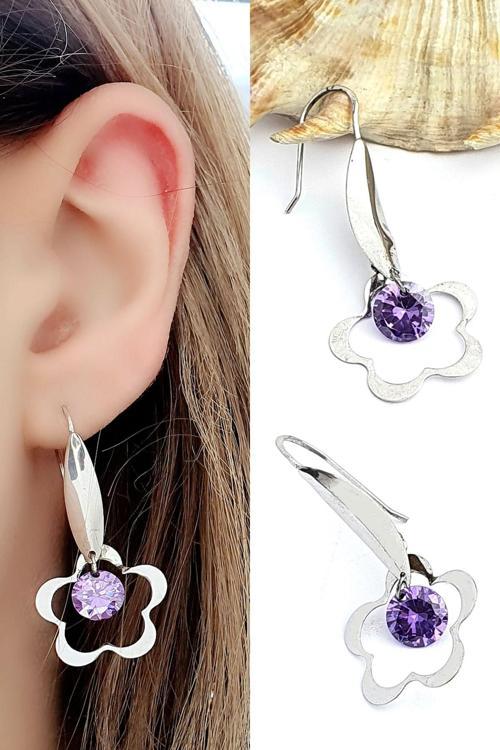 Ose Shop Mor Ametist Taşlı italyan 925 ayar Gümüş Tasarım Küpe
