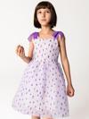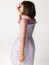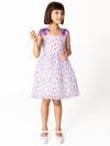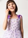 Lila tül üzerine simli mor benekleriyle dikkat çeken bu diz boyu kabarık etekli parti elbisesi, elegant kalıbı ve özel kumaşıyla göz alıcı bir tasarım sunuyor. Mor renk, askılardaki fiyonk detayıyla da taşınarak şıklığı tamamlıyor. Özel günlerde giyilebilecek bu elbise, hem rahat hem de etkileyici bir tarz arayanlar için mükemmel bir seçenek