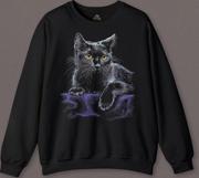 So Cool Mor Battaniye Üstünde Uzanan Sevimli Kedi Black Cat Baskılı Sweatshirt