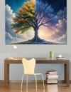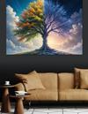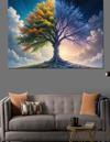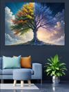 Mor Mavi Ağaç Gün Doğumu Dekoratif Kanvas - Mdf Ahşap Tablo
