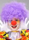 Mor Renk Kıvırcık Afro Bonus Peruk Takma Saç Ve Kırmızı Burun Seti