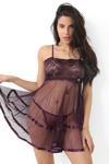 Sistina-835 Mor Şifon Pileli Dantelli Gecelik