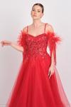 Detay: Üst kısmı tamamen taşlarla süslenmiş, altı tül kabarık model maxi abiye elbise kolları sarkan tipte taş ve boncuk süslemeleriyle ihtişamlı bir görünüm sunarken, otrişli detaylarıyla zarafeti vurgular. Katmanlı eteği—en altta astar, üstte tül katlar ile hareket ettikçe büyüleyici bir siluet yaratır. Fermuar kapamasıyla kolay kullanım sağlayan bu abiye, özel davetlerde, mezuniyetlerde ve düğünlerde fark edilmek isteyenler için ideal bir tercihtir;