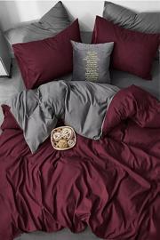 Çift Kişilik Nevresim Seti 2 Yastık Kılıfı Çarşafsız Bordo Gri