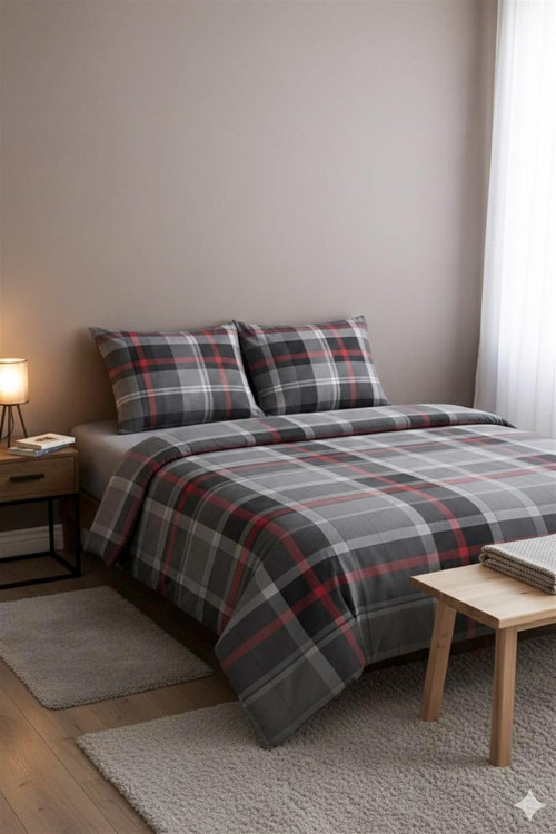 More Home Lastikli Çarşaflı Nevresim Takımı Ekose Desen
