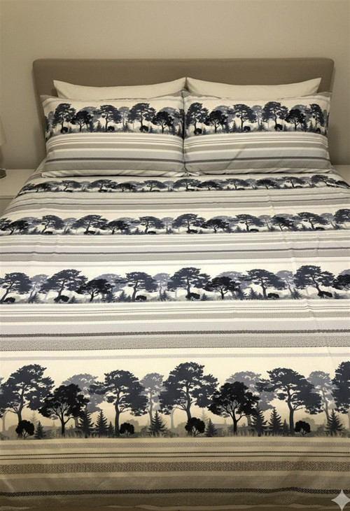 More Home Tek Kişilik Lastikli Çarşaf Nevresim Takımı Siyah Beyaz Ağaç Desen