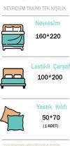 günlük uyku rutininizi bir üst seviyeyetaşıyan çarşaf seti olup, yatağınızı ve yatak odanızı anında değiştirmenizeolanak sağlar. Renk seçeneği ile yatak odanızı mevsime veya ruh halinize göreanında değiştirme özgürlüğüne sahipsiniz. Yumuşak pamuklu ve nefes alabilenkumaş yapısı sayesinde, konforlu ve rahat bir uyku deneyimi sunar. Tarzınızı veruh halinizi yansıtan bir seçim yapın ve konforun keyfini çıkarın!