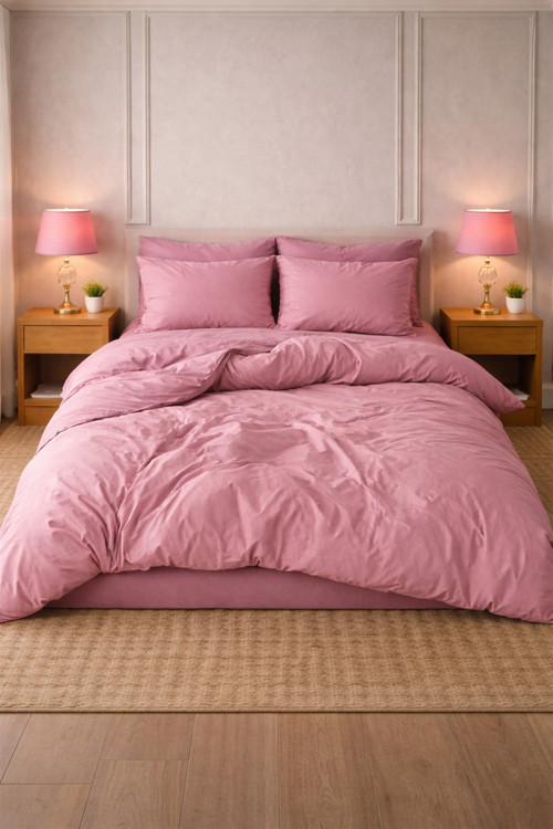 Gül Kurusu Tek Kişilik Pamuklu Nevresim Takımı Lastikli Çarşaf