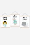 Morfil Sanat Atölyesi Kopya - Sevimli Hayvanlar Ip Askılı Çocuk Odası Kanvas Poster Tablo Duvar Dekoru (3'Lü Set)