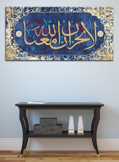 Morfil Sanat Atölyesi La Tahzen Innallahe Meana Üzülme, Allah Bizimle Beraberdir Dini İslami Hat Kanvas Tablo