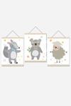Çocuk odalarına neşe katan sevimli hayvanlar temalı kanvas poster, duvar dekorasyonu olarak odanın atmosferini canlandırır