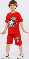 Go Veform Mornio Erkek Çocuk %100 Pamuk Hip-Hop Baskılı T-shirt ve Şort 2 li Takım MRN3102728-1VF Kırmızı