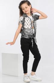 Mornio markasının özgün tasarımlarıyla bezenmiş bu 3'lü takım, kız çocukların yaz ve mevsimlik günlerinde hem şıklık arayışlarını hem de rahatlıklarını karşılıyor. Etnik desen alttan bağlamalı renkli gömlek, tişört ve kot pantolonun uyumlu kombinasyonu, çocuğunuzun tarzını ve özgünlüğünü yansıtır.